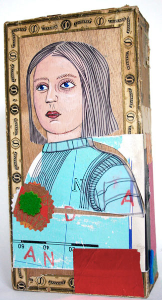 Peng | Bildcollage, Acryl in Zigarrenholzschachtel